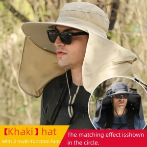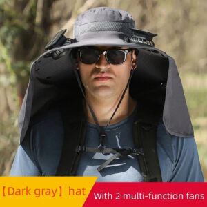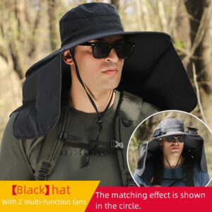 Fishing hat with solar fan, soft cotton sweat-absorbent sun protection hat, wide-brim solar fan outdoor fishing hat |