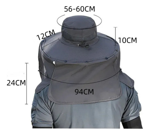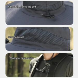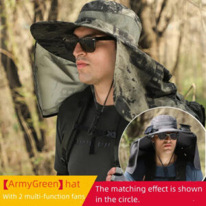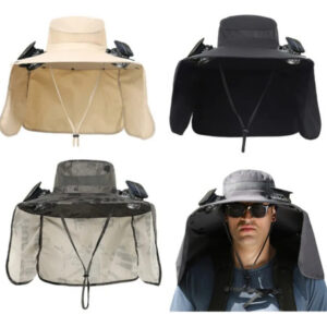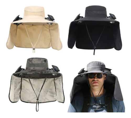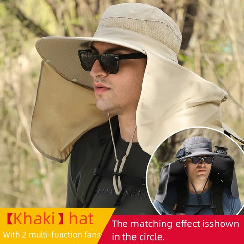 Modelo: Fishing hat with solar fan, soft cotton sweat-absorbent sun protection hat, wide-brim solar fan outdoor fishing hat