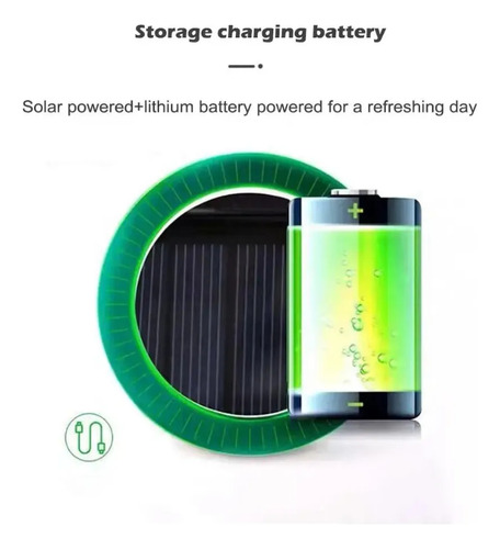 alimentación: carga USB o carga solar.