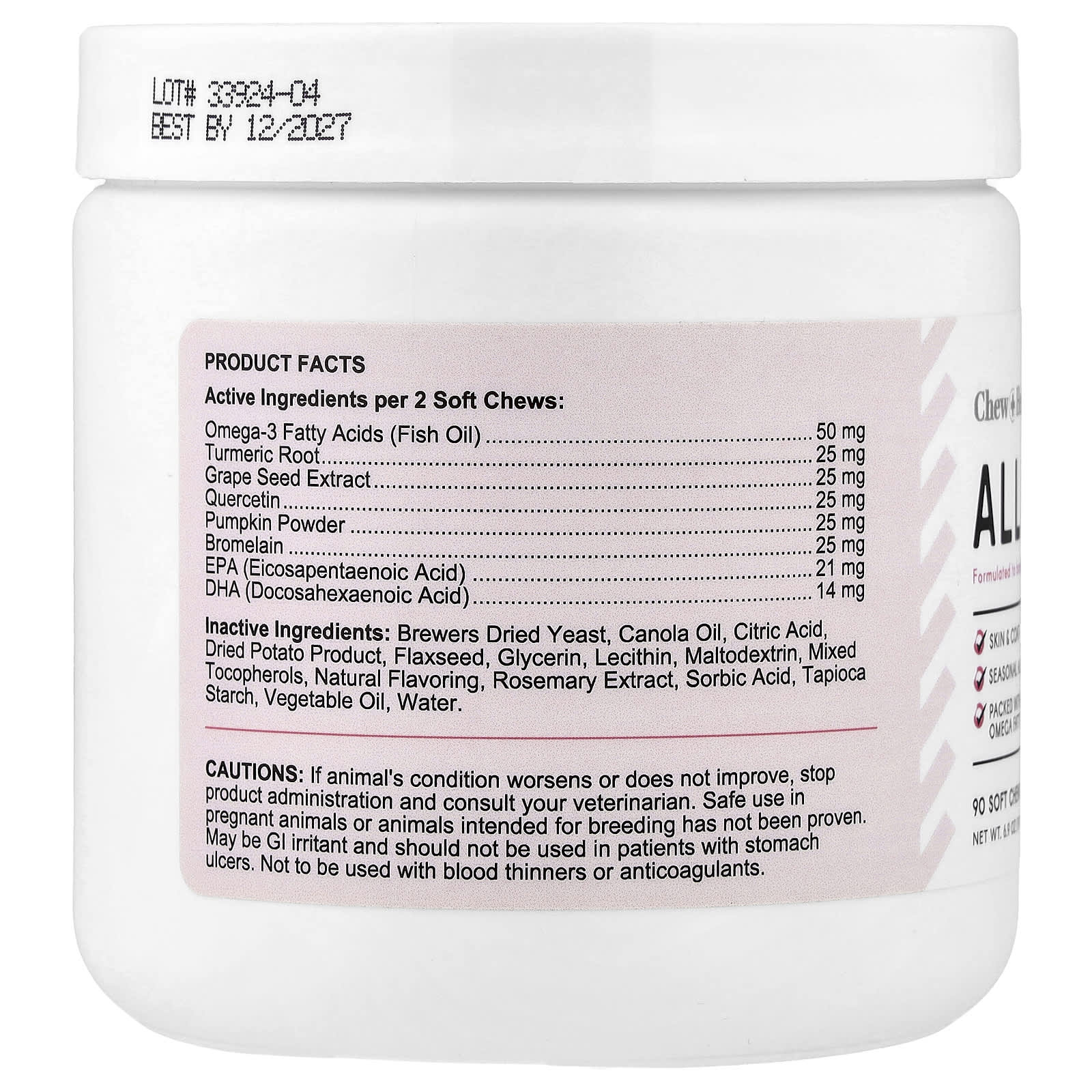 Chew + Heal Allergy Aid para Cães 90 Soft Mastigáveis 198 g (69 oz) – Chew + Heal Pets Saúde dos pets Tratamentos e remédios para cães.