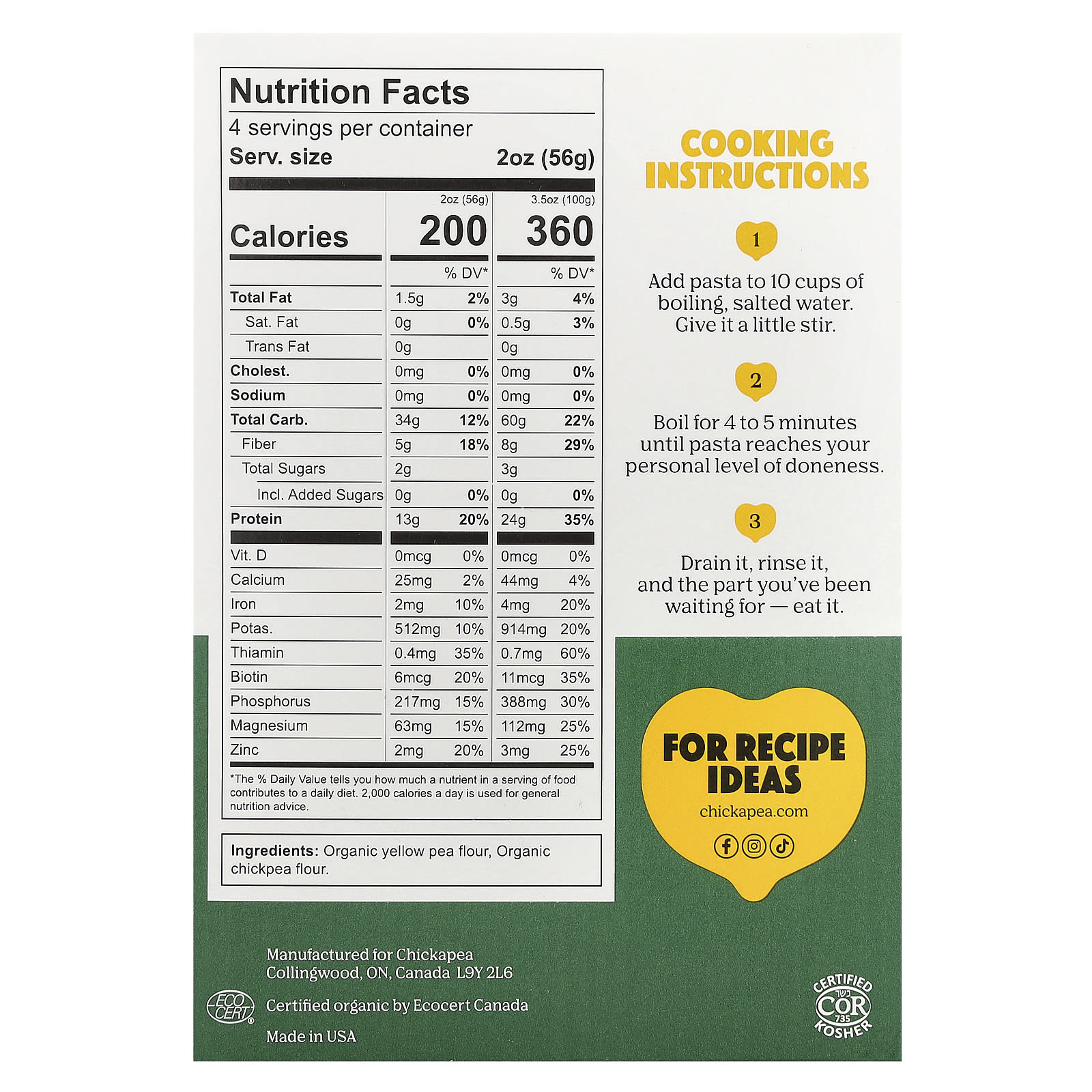 Chickapea Cotovelos Orgânicos 227 g (8 oz) – Chickapea Alimentos Alimentos embalados e prontos Massas e Macarrão.