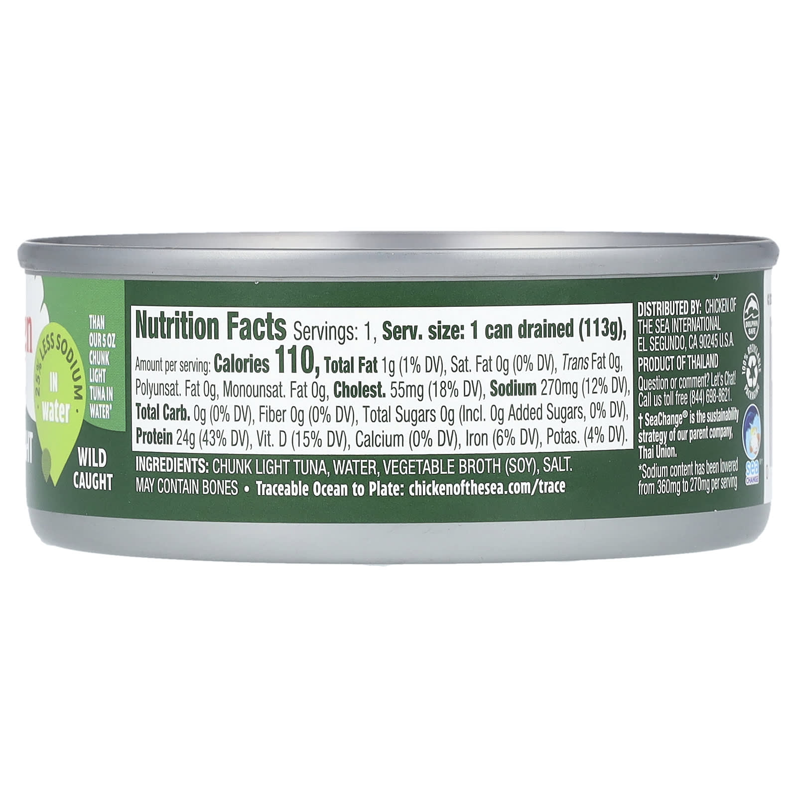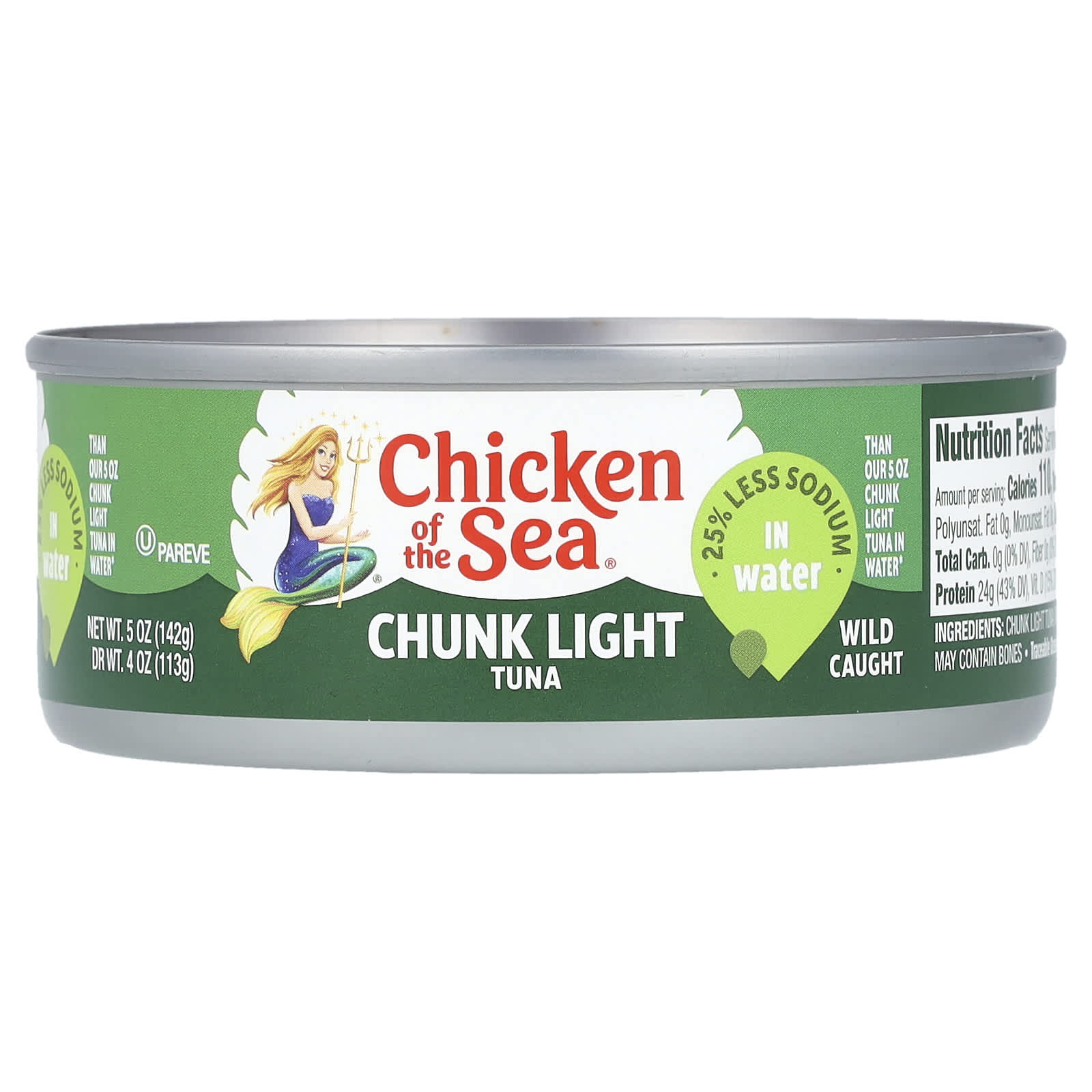 Chicken of the Sea Pedaços de Atum Light em Água 25% Menos Sódio 142 g (5 oz) – Chicken of the Sea Alimentos Alimentos embalados e prontos Frutos do Mar Atum.