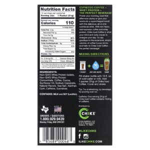 Energize sua manhã, supere a desânimo da tarde ou dê um reforço extra aos seus treinos com esta bebida nutricional completa e deliciosa. Com sabor intenso, café expresso de verdade e proteína whey, o Café Gelado da Chike é o que sua mente e seu corpo desejam para energizar o seu dia. Então, dizer adeus às calorias caras e vazias das bebidas de café e olá para o Chike Gelado Coffee, a bebida perfeita!
