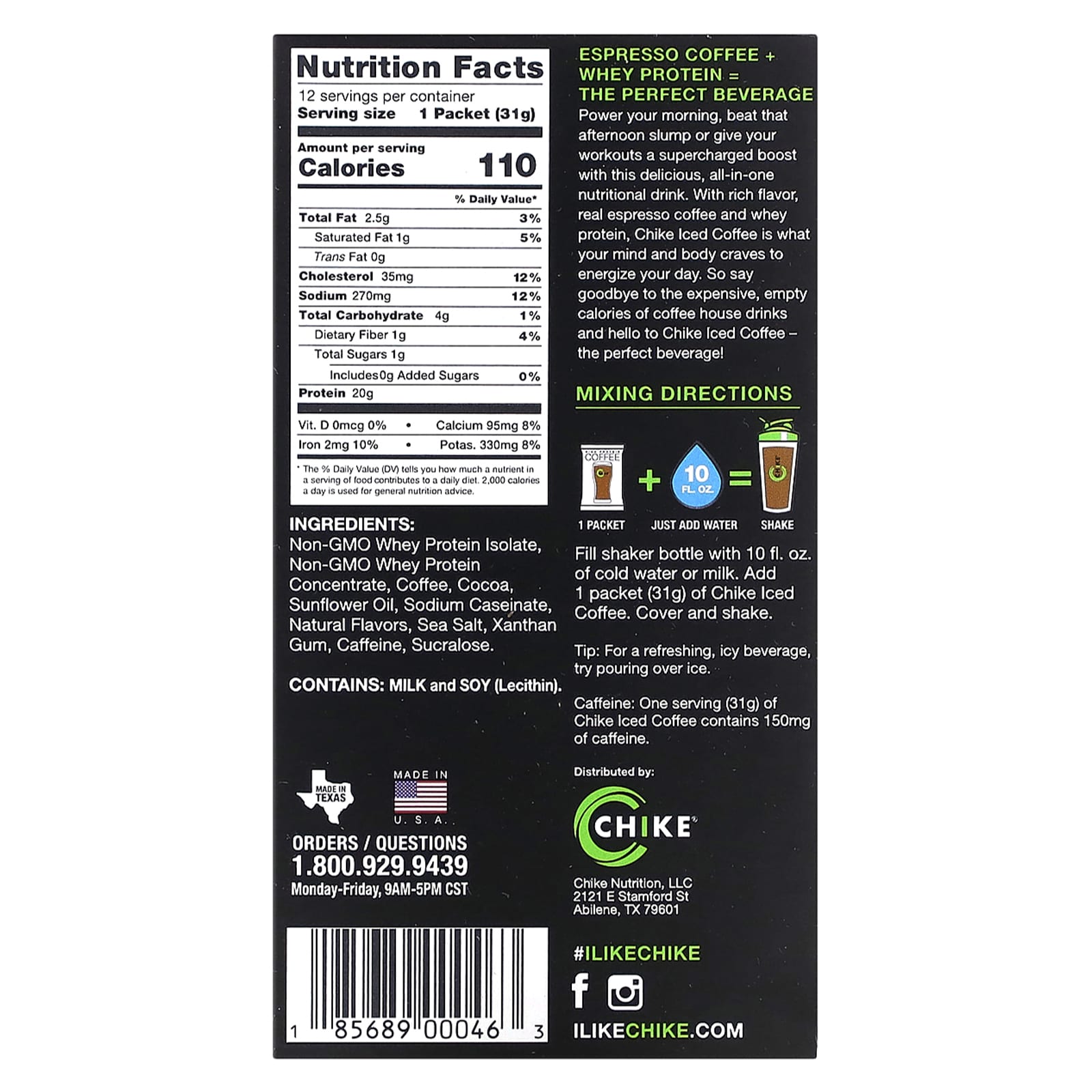 Chike Nutrition Café Gelado com Alto Teor de Proteína Chocolate e Caramelo 12 Embalagens 31 g (109 oz) Cada – Chike Nutrition Nutrição Esportiva Proteína Proteína Whey Isolado protéico de soro de leite.