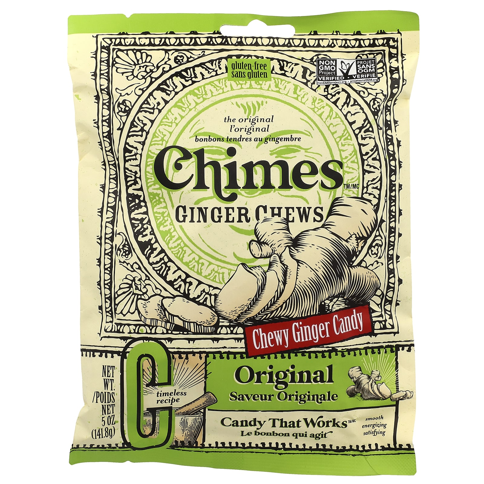Chimes Gengibre Mastigável Original 1418 g (5 oz) – Chimes Alimentos Chocolate e doces Doces Gomas e mastigáveis Petiscos e lanches Frutas e Legumes Secos.