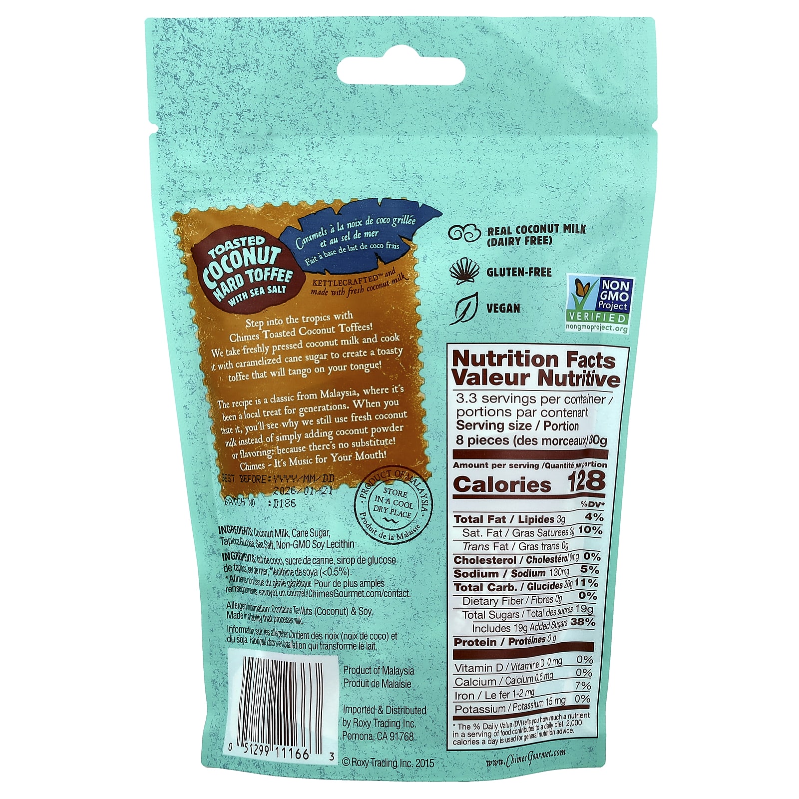 Entre nos trópicos com os Tofes de Coco Torrados da Chimes! Pegamos o leite de coco recém-prensado e o cozinhamos com açúcar de cana caramelizado para criar um caramelo tostado que marcará sua língua!