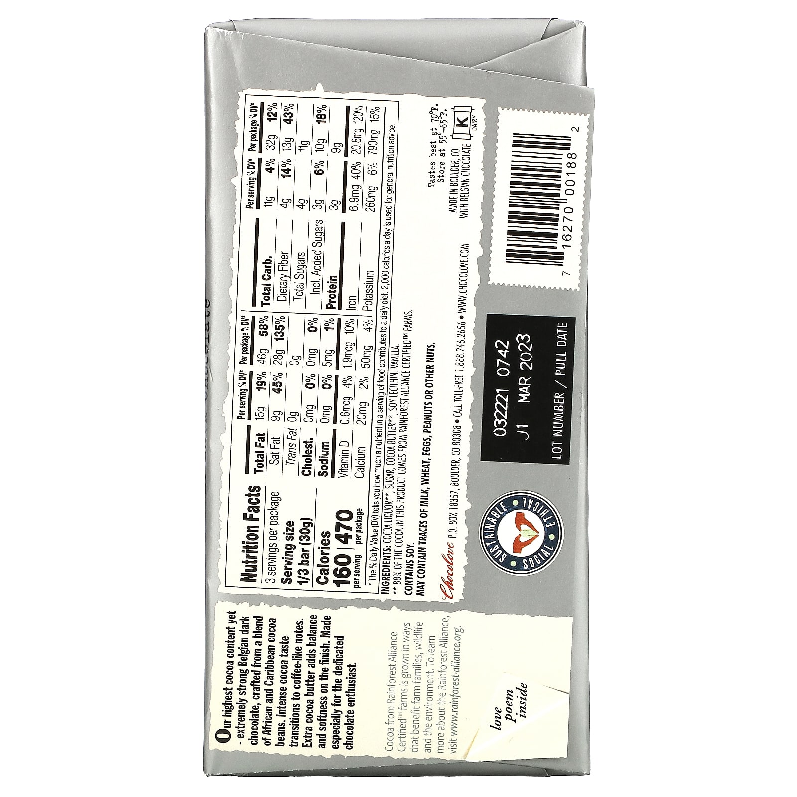 Chocolove Chocolate Amargo Extremo 88% de Conteúdo de Cacau 90 g (32 oz) – Chocolove Alimentos Chocolate e doces Chocolate Chocolate Amargo.