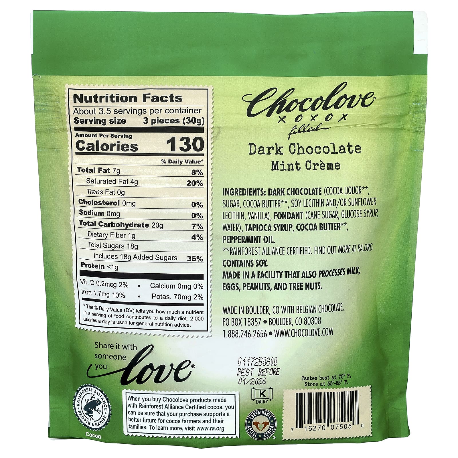 Chocolove Chocolate Amargo Recheado com Menta 55% Cacau 100 g (35 oz) – Chocolove Alimentos Chocolate e doces Chocolate Chocolate Amargo.