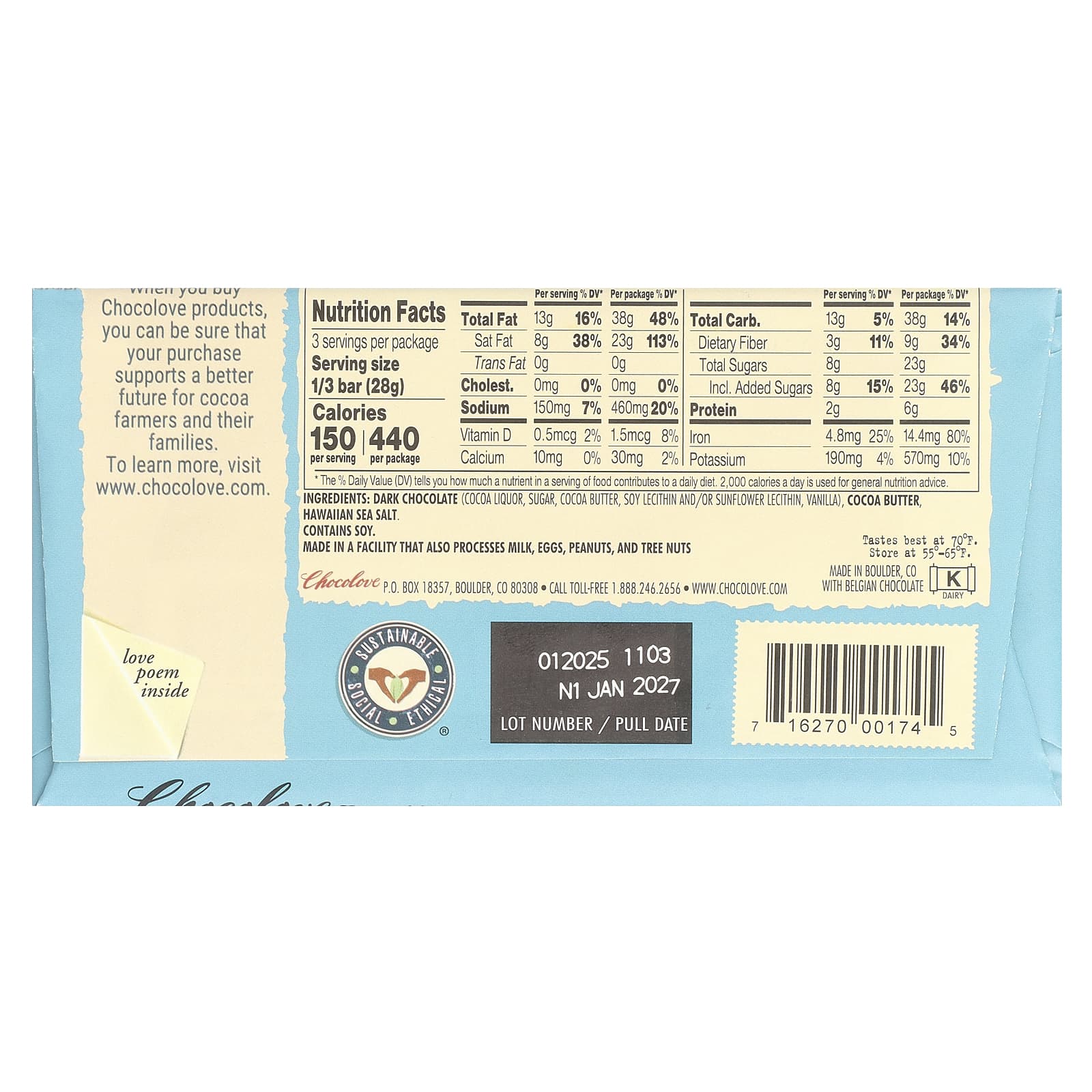 Chocolove Sal Marinho Havaiano em Chocolate Amargo Forte 90 g (32 oz) – Chocolove Alimentos Chocolate e doces Chocolate Chocolate Amargo.