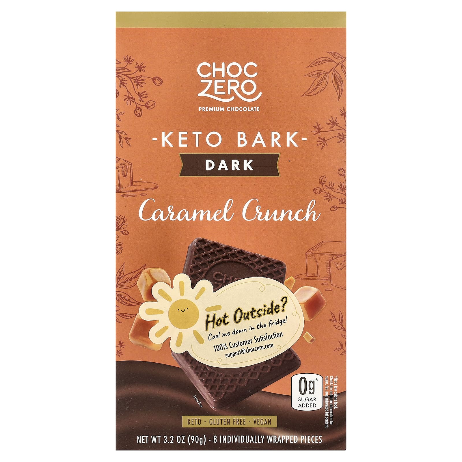 ChocZero Casca Cetogênica Chocolate Amargo Caramelo Crocante 8 Minibarrinhas 90 g (32 oz)