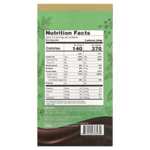 Chocolate amargo (chocolate sem açúcar, manteiga de cacau), fibra de milho solúvel (dextrina resistente), lecitina de girassol, extrato de fruta do monge, sabor natural de hortelã-pimenta, corante natural (clorofila).