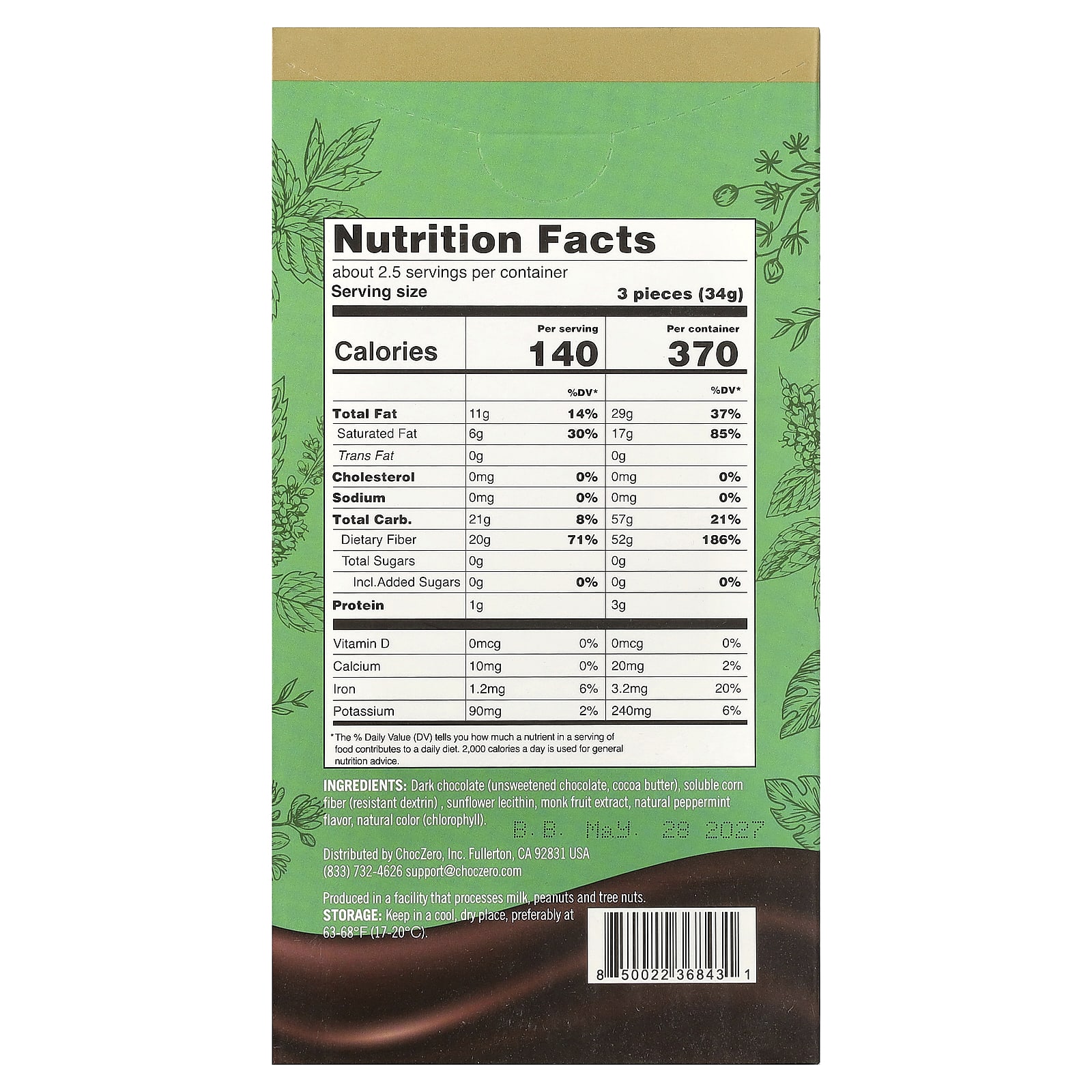 ChocZero Casca Cetogênica Chocolate Amargo Hortelã-Pimenta Crocante 8 Minibarrinhas 90 g (32 oz) – ChocZero Alimentos Chocolate e doces Chocolate Chocolate Amargo.
