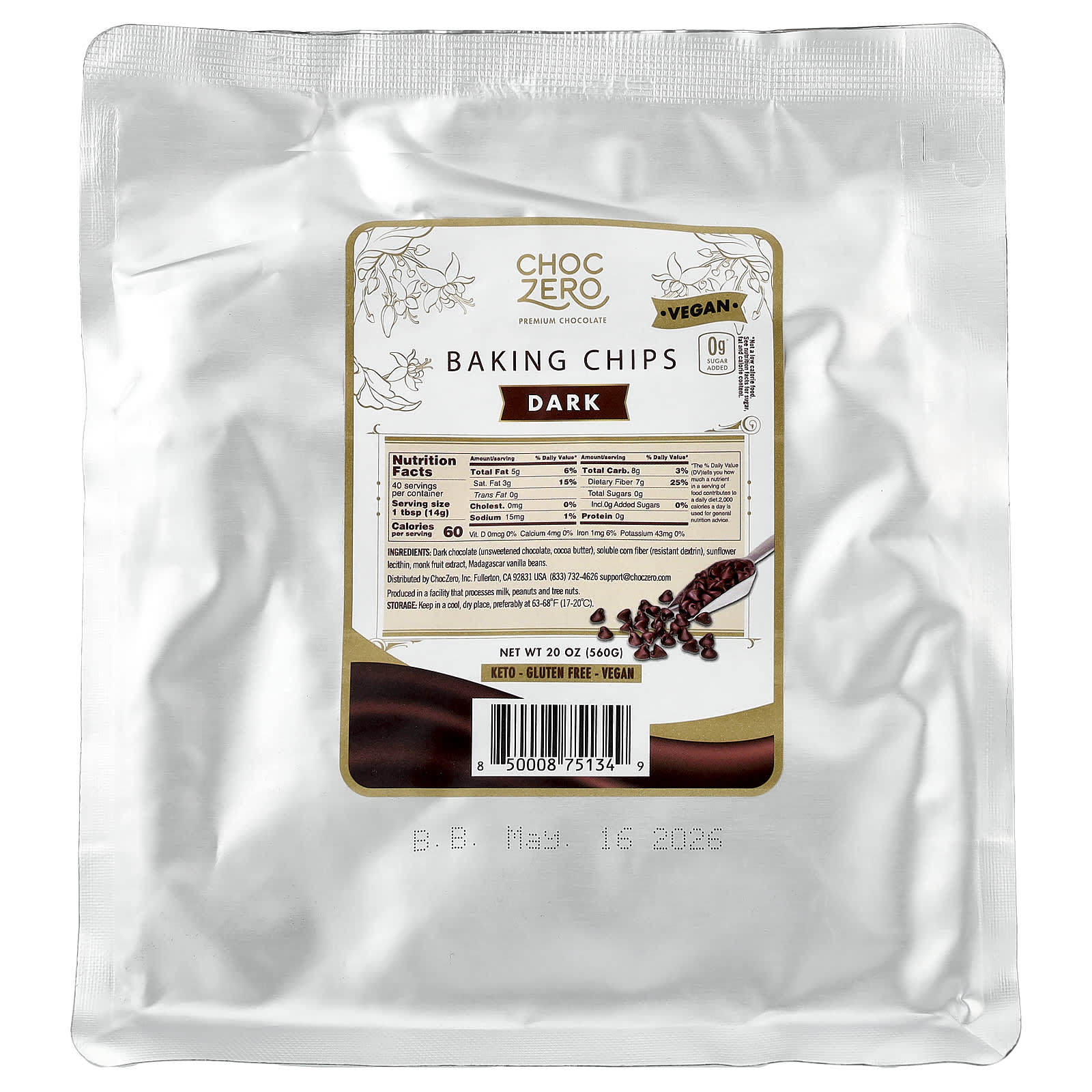 ChocZero Chips de Panificação Escuro 560 g (20 oz) – ChocZero Alimentos Fermentos, farinhas e misturas Chocolate para cozinhar.