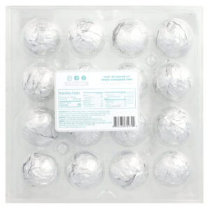 Embalado em uma bela película de prata e embalado em uma caixa para joia, este produto seria um maravilhoso presente cetogênico para alguém que você gostaria de tratar como um rei ou uma rainha! Dentro de cada trufa de coco há uma deliciosa avelã cercada por um ganache cremoso.