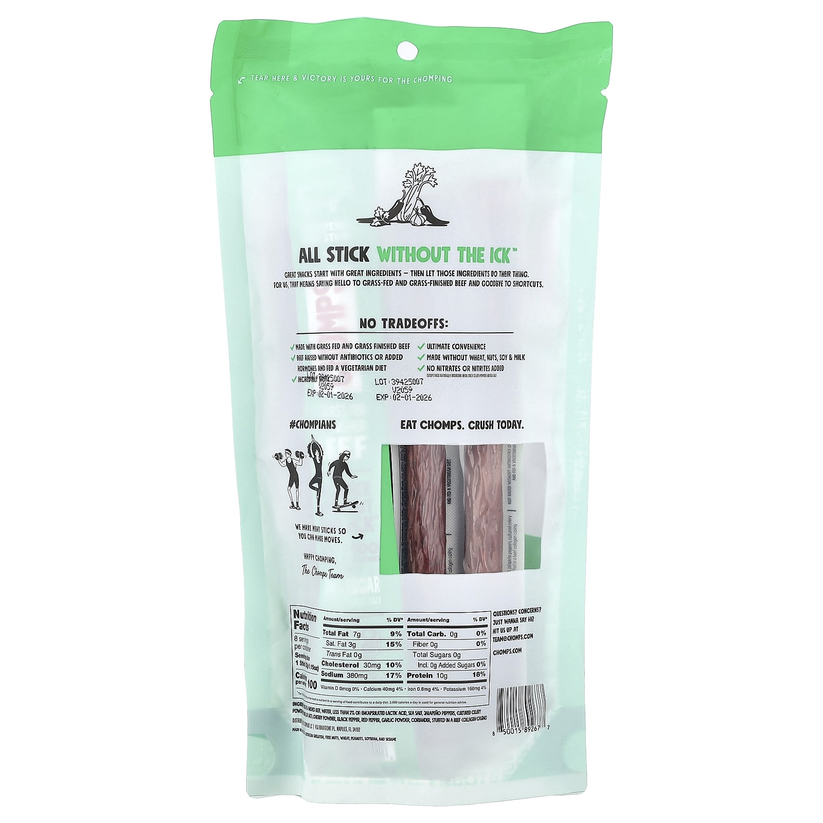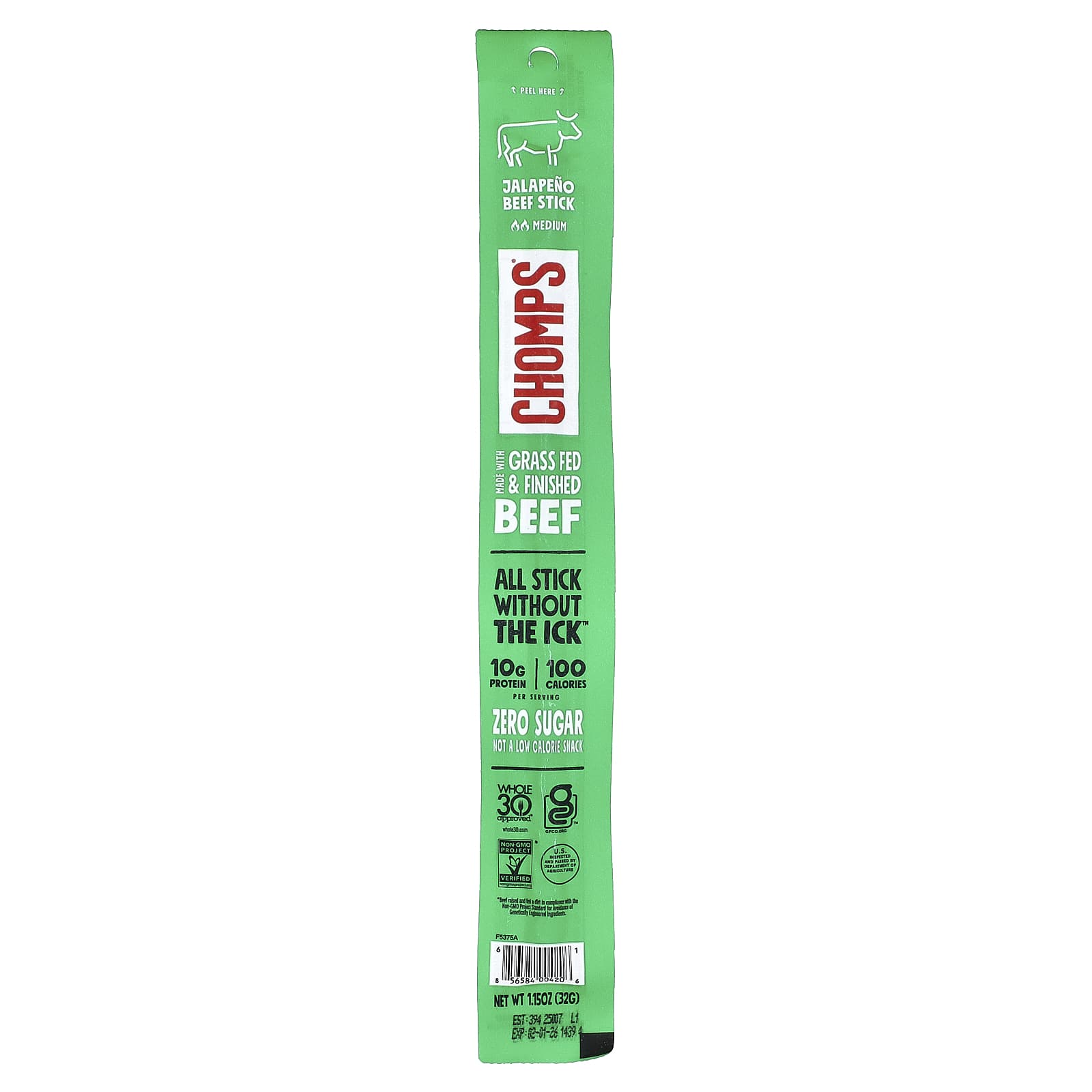 Chomps Bastão de Carne Jalapeño Médio 8 Bastões 32 g (115 oz) Cada – Chomps Alimentos Petiscos e lanches Petiscos de charque e carne.