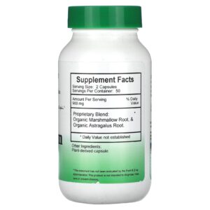 | Mistura Patenteada: Raiz de marshmallow orgânico e raiz de astrágalo orgânico. |