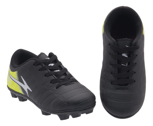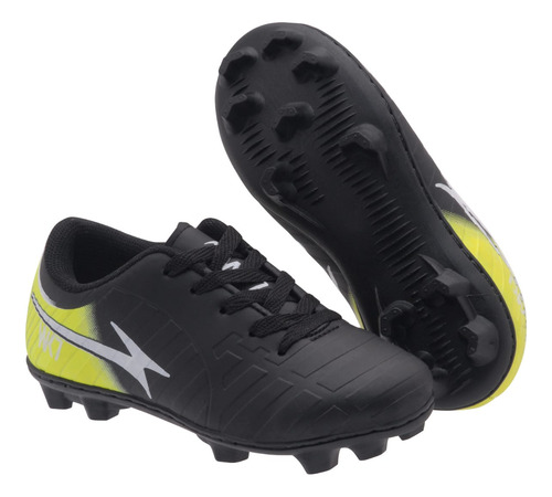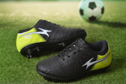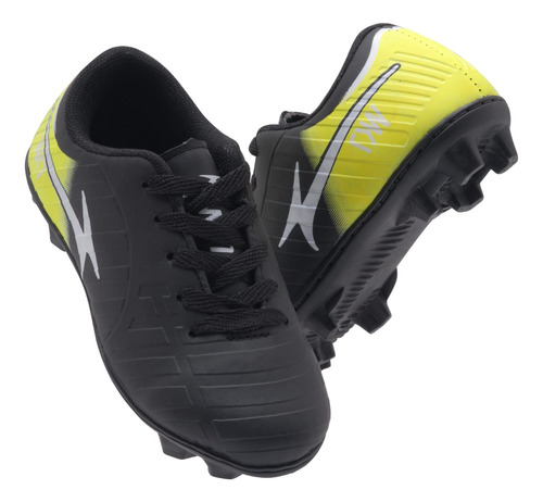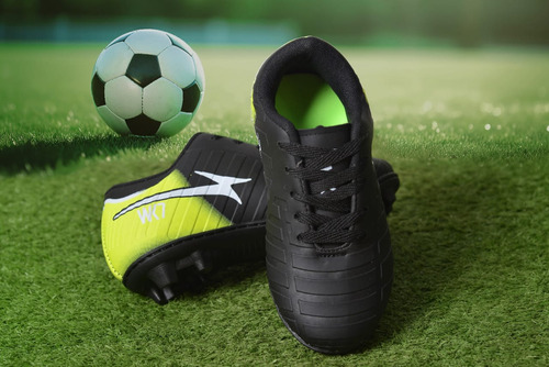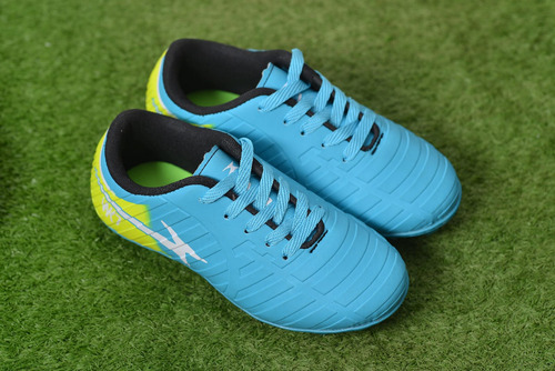 • Design Moderno: Disponível em duas cores (Azul Celeste e Preta) com detalhes em verde limão, as chuteiras são perfeitas para meninos e meninas que adoram brilhar em campo.
