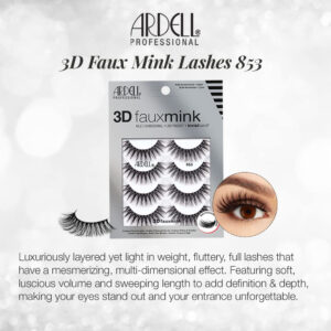 Cílios Ardell 3D Faux Mink 853 4 pares — Cílios sintéticos ousados e lindos: olhares deslumbrantes com os cílios Ardells 3D Faux Mink 823 Strip! O par perfeito de cílios postiços se você está procurando algo marcante com um toque clássico. O 823 abre seus olhos com seu formato de cílios redondos que é mais longo no centro e fica mais curto à medida que desce até os cantos interno e externo. – Textura para dias: cheia do volume certo, mas equipada com fibras longas que chamam a atenção a cada vibração dos olhos! É fácil se apaixonar pelos cílios Ardell Faux Minx 853 feitos à mão em estilo cruzado, um efeito 3D que leva a aparência dos cílios a uma dimensão totalmente nova. Cílios deslumbrantes e lindos em um instante! – Fibras de cílios luxuosas: desfrute de fibras de cílios irresistivelmente macias e sedosas que parecem e parecem naturais. Dança alegremente com cada movimento seu e apenas gritos me tocam! para qualquer pessoa sortuda o suficiente para dar uma olhada. A melhor parte é que essas fibras de cílios luxuosamente fofas e emplumadas são 100% livres de crueldade e são veganas. – Aplicação fácil e confiável: pare de jogar com seus cílios! O sistema de faixa para cílios Invisiband facilita a fixação de suas falsificações com um ajuste invisível e confortável. Chega de enfeitar e cutucar sem parar. Agora, você pode imediatamente! Saia com total confiança com olhos grandes, lindos e expressivos que falam tudo!