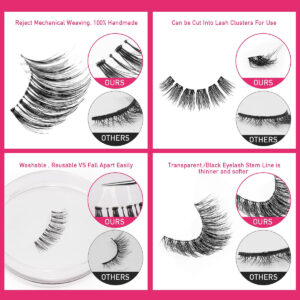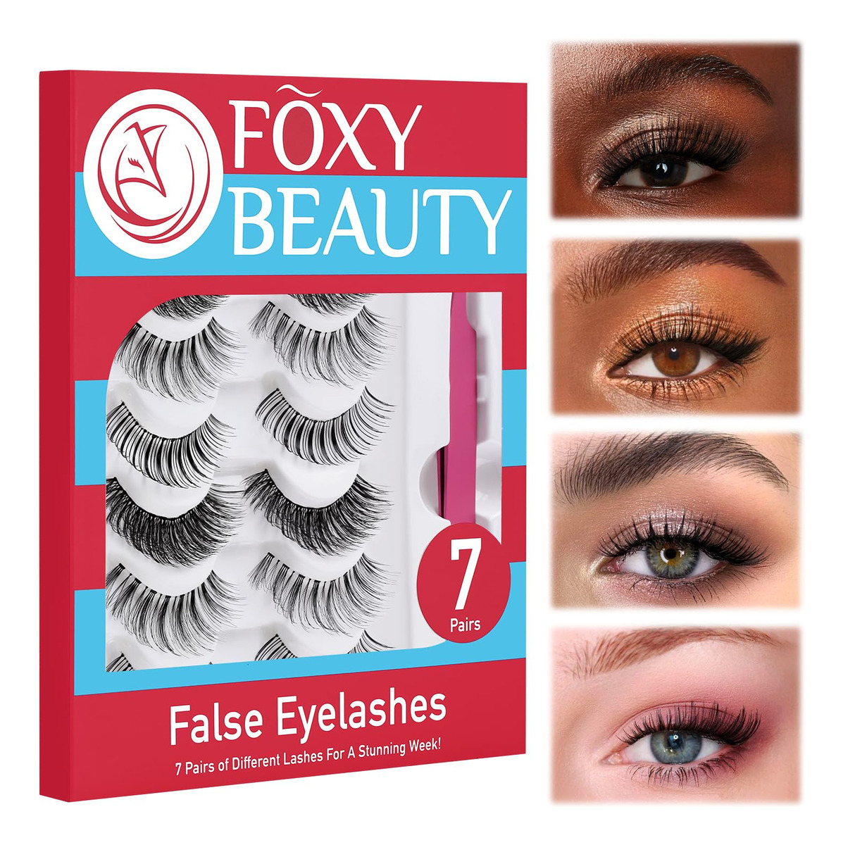 Cílios postiços — 7 pares de cílios naturais cortáveis com pinça, cílios fofos de vison sintético 5D, cílios de mangá, laváveis, reutilizáveis, leves (edição limitada) — Cílios em tiras que podem ser cortados por você mesmo — Este kit de extensão de cílios possui 7 pares de cílios em tiras e uma pinça, perfeito para iniciantes e amantes de cílios. Personalizáveis para se adequar a qualquer formato de olho, os cílios podem ser facilmente cortados em grupos de cílios ou de 4 a 5 cílios individuais para um ajuste personalizado sem perder a integridade. Crie sua aparência única com confiança! – 100% feito à mão — Feitos com cuidado, nossos cílios são meticulosamente tricotados à mão e amarrados com perfeição. As hastes não têm cola e os cílios naturais são à prova d'água. A técnica de estratificação manual dá a esses cílios uma aparência natural e perfeita que combina facilmente com a sua. Além disso, eles são livres de crueldade, para que você possa desfrutar da beleza sem concessões. – Alta qualidade – Desfrute de cílios com qualidade de salão em casa e evite os custos e as visitas ao salão. Feitos com proteína de seda, nossos cílios ultramacios e leves são tão naturais que você mal notará que estão firmes e não ficam grudados. Nossa tecnologia de ponta cônica garante que seus cílios pareçam naturalmente exuberantes. Eles também são compatíveis com lentes de contato, o que os torna perfeitos para passar facilmente do dia de trabalho para sair à noite. – Cílios diferentes para uma semana incrível – Estilos de cílios diferentes para completar suas rotinas de maquiagem para os olhos. Curta natural *2, bebês naturais*2, estilo mangá*Cílios 2,5d*2. – Compra sem riscos – Fundada por uma entusiasta de cílios, a equipe da Foxy Beauty usa e testa pessoalmente nossos cílios diariamente antes de trazê-los até você. Estamos comprometidos em garantir uma qualidade excepcional. Se você não estiver satisfeito com sua compra, oferecemos uma substituição gratuita ou um reembolso total. Você tem minha palavra.