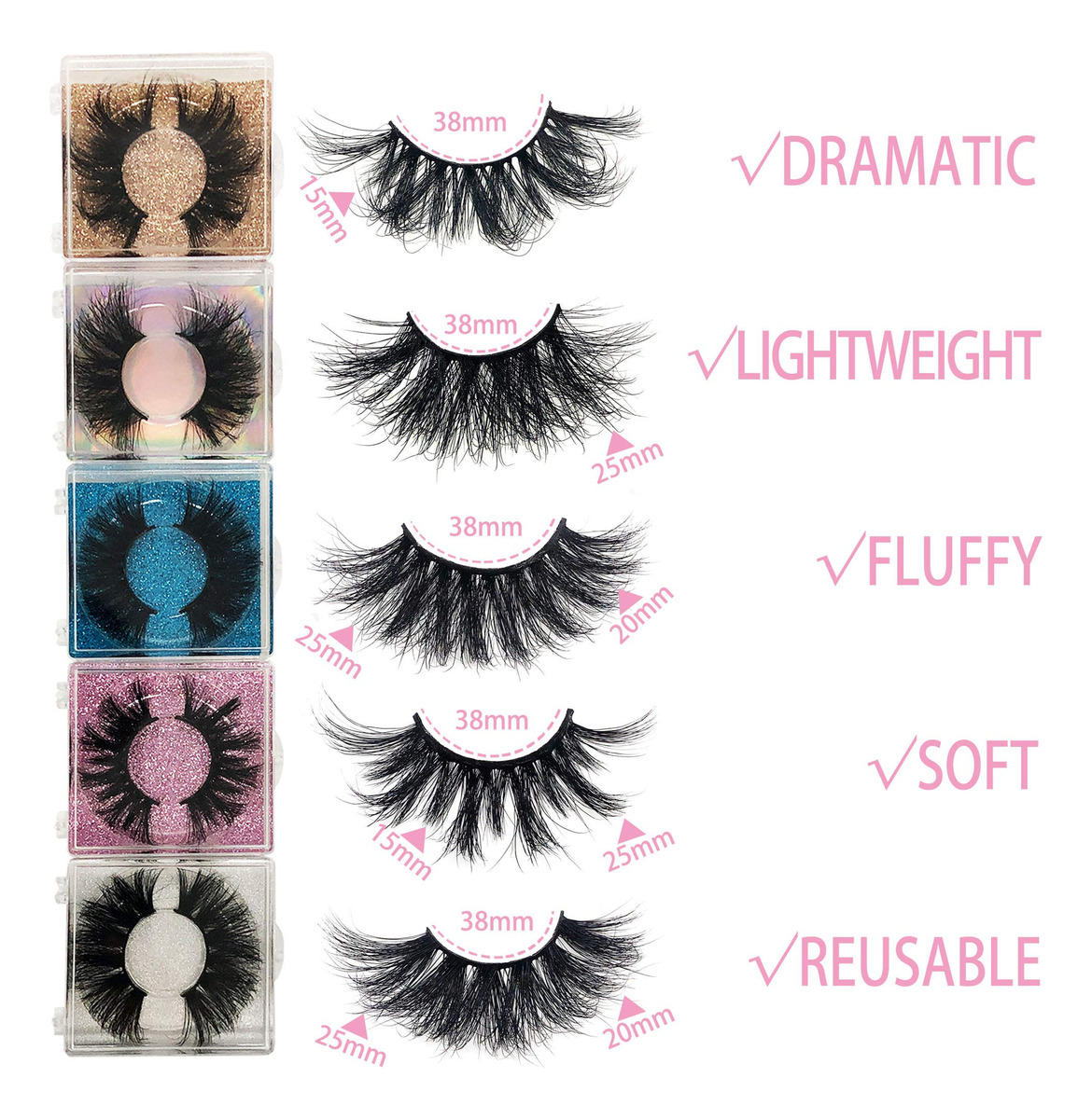 História da marca Sou maquiadora profissional. Eu comprei muitas marcas de cílios, e sempre há alguns lugares com os quais não estou satisfeita. Por exemplo, não é fofo, não é macio o suficiente, não atinge o comprimento que eu gosto e, às vezes, não consigo pagar o preço. Estou muito angustiado com isso. Visitei muitas fábricas de cílios grandes para resolver esses problemas. Espero que minhas sugestões possam ser adotadas, mas os resultados são sempre insatisfatórios. Finalmente, decidi criar minha própria marca de cílios. Sou maquiadora profissional. Conheço suas desvantagens e vou torná-la mais perfeita. Para que meus consumidores se apaixonem pelos cílios da minha marca, este é um novo começo. Especificações de cílios postiços: 1. Peso dos cílios: 0,5 g (caixa de varejo R de 30 g). 2. Material dos cílios: 100% cabelo de pele de vison siberiano 3. Cílios Terrier: Black Terrier 4. Pacote: 10 pares de cílios de vison, 5 estilos Dicas sobre como usar cílios 1. Remova cuidadosamente os cílios do estojo com uma pinça 2. Compare os cílios com o comprimento da linha dos olhos, corte no comprimento e largura adequados, se necessário. 3. Adicione cola na raiz dos cílios com ferramentas. 4. Segure os cílios na raiz dos cílios naturais com pressão. Se necessário, aplique sombra ou delineador para deixar a linha dos olhos mais natural – pacote com 10 cílios de vison de 25 mm: cílios dramáticos tornam você mais atraente. Você será a estrela mais brilhante da multidão. Adequado para uso diário, festas, festivais, sessões de fotos. – 5 estilos de cílios de vison dramáticos: por meio do maquiador profissional, selecionou os cinco estilos mais populares atuais. Se você está no ramo de cílios, não perca! – Cílios de pele de vison premium 100% siberianos: esses pelos são naturais que caem de vison artificial, são mais confortáveis e macios que os cílios sintéticos, tornam seus cílios lindos – Cílios de longa duração feitos à mão: faixa de cílios postiços 100% feita à mão, é muito confortável, leve, de alta qualidade e fácil de aplicar, pode ser reutilizável até 20 a 25 vezes com os devidos cuidados. – Embalagem de alta qualidade e pós-venda Serviço: 10 pares de cílios de vison 3D de 25 mm. Reenviaremos os produtos não qualificados gratuitamente e um reembolso total será concedido se não estivermos satisfeitos com os produtos. Em caso de qualquer problema, entre em contato conosco a tempo.