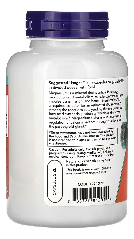 Citrato de Magnésio Now Foods 120 Veg Caps Produto Importado