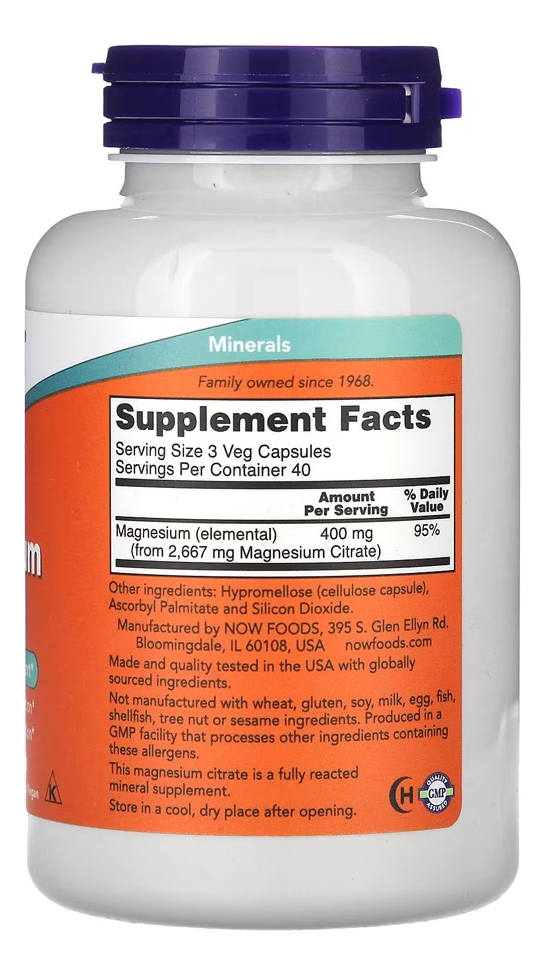 Citrato de Magnésio Now Foods 120 Veg Caps Produto Importado