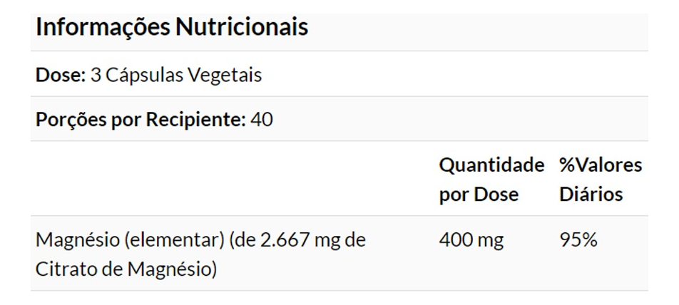 2. Vantagem das Cápsulas Vegetais: As cápsulas vegetais são uma forma prática e fácil de consumir o Citrato de Magnésio. Esta apresentação em cápsulas permite uma dosagem precisa e conveniente, ideal para uma rotina diária equilibrada.