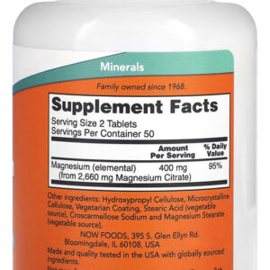 Citrato de Magnésio 200mg Now Foods 100 Tablets – Importado