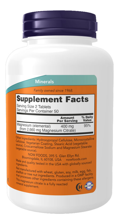 Citrato de Magnésio 200mg Now Foods 250 Tab Produto Importado