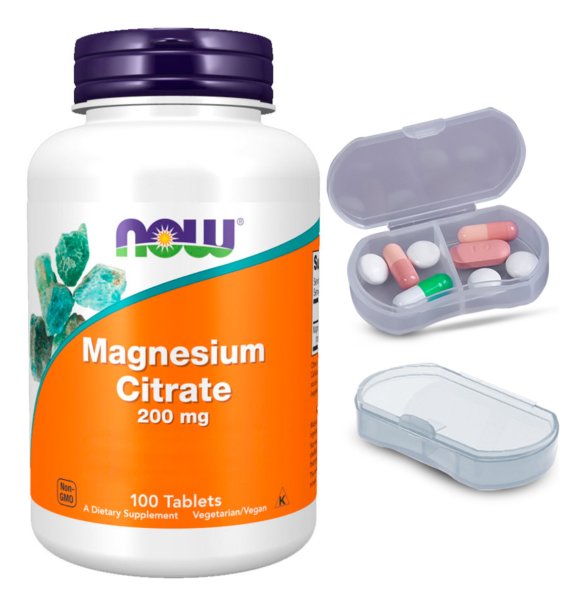 Kit Citrato de Magnésio 200mg Now Foods 250 Tabs + Porta Cápsulas Suporte Nutricional Eficiente: O Citrato de Magnésio da Now Foods oferece um suporte nutricional focado, fornecendo 200mg de magnésio por tablete. Este produto é ideal para aqueles que buscam manter um equilíbrio nutricional eficiente em suas rotinas diárias. Conveniência em Tabletes: Apresentado em forma de tabletes, este suplemento garante uma ingestão prática e dosada. Cada tablete é facilmente consumível, proporcionando uma maneira conveniente de incluir magnésio na sua dieta. Qualidade e Disponibilidade Garantidas: Este produto é importado e representa a renomada qualidade da Now Foods. Além disso, está disponível para pronta entrega, assegurando que você possa começar a incluí-lo em sua rotina rapidamente. Porta Cápsulas com Duas Repartições: O kit também inclui um porta-cápsulas prático, dividido em duas seções internas. Isso permite uma organização eficaz e separada de diferentes tipos de cápsulas ou pílulas. Composição Detalhada: Este suplemento é formulado com 200mg de citrato de magnésio por tablete, oferecendo uma fonte concentrada deste mineral essencial. A escolha do citrato de magnésio garante uma boa absorção, tornando-o uma opção eficiente para a sua escolha nutricional. VALIDADE LONGA