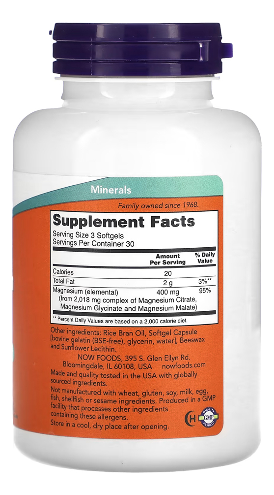 Citrato de Magnésio Now Foods 90 Softgels Produto Importado