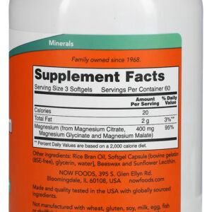 Citrato de Magnésio Now Foods 180 Softgels Produto Importado