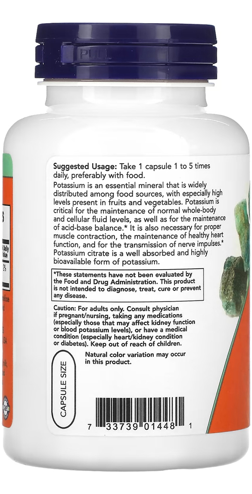 Citrato De Potássio 99mg Now Foods 180veg Caps Importado Eua