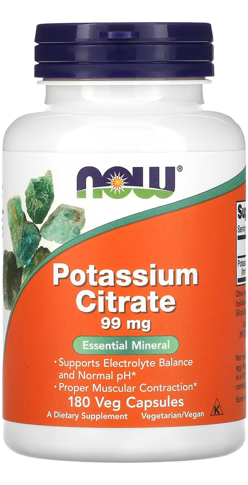 Citrato de Potássio 99mg Now Foods 180Veg Caps – No Brasil