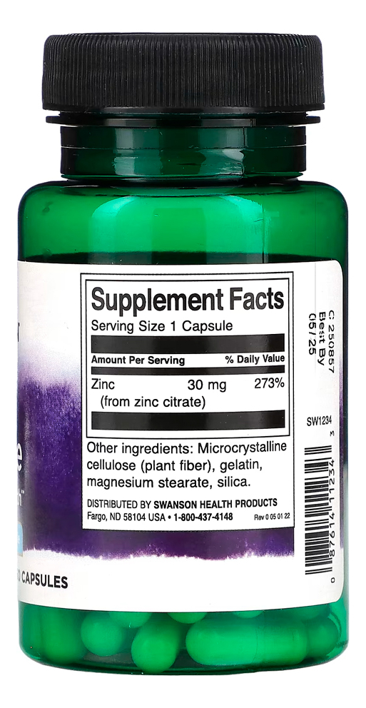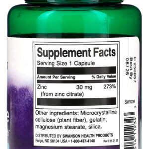 Citrato de Zinco 30 mg Swanson 60 Capsulas Importado