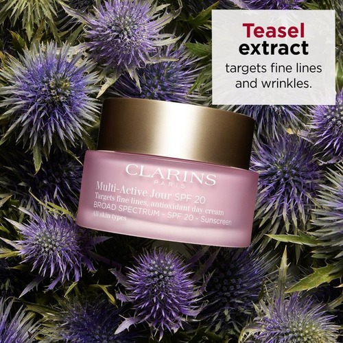 Público-alvo Palavras-chave: hidratante facial, antirrugas, cuidados com a pele, protetor solar SPF 20, extrato de teasel, revitalizante para pele, creme de dia, cuidado antienvelhecimento, pele radiante, hidratante com SPF, tratamento de linha fina, cuidado facial, creme para pescoço, cuidados com a pele, produtos Clarins, beleza facial, cuidados pessoais, protetor solar, rotina de cuidados faciais, tratamento anti-manchas, pele saudável, creme antioxidante, creme rejuvenescedor