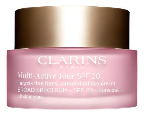 Creme de dia multiativo Clarins SPF 20 Hidratante antienvelhecimento Proteção UVA/UVB Minimiza as linhas finas Aumenta o brilho