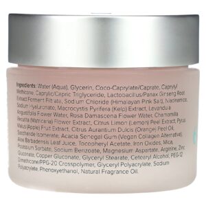 Água (aqua), glicerina, coco-caprylate/caprate, caprylyl methicone, caprylic/capric triglyceride, extrato da raiz de Panax ginseng, filtrado de fermentação, cloreto de sódio (sal rosa do Himalaia), nicotinamida, hialuronato de sódio, extrato de Macrocystis pyrifera (alga castanha), água da flor de Lavandula angustifolia, água da flor de Rosa damascena, extrato da flor de Chamomilla recutita (matricária), extrato da casca de Citrus limon (limão-siciliano), extrato da fruta de Pyrus malus (maçã), óleo da casca de Citrus aurantium dulcis (laranja), saccharide isomerate, goma de acácia-do-senegal (alternativa vegana ao colágeno), suco da folha de Aloe barbadensis, acetato de tocoferol, óxidos de ferro, mica, sorbato de potássio, benzoato de sódio, aspartato de magnésio, arginina, gliconato de zinco, gliconato de cobre, monoestearato de glicerila, álcool cetoestearílico, dimeticona peg-12/polímero ppg-20, glyceryl polyacrylate, sodium polyacrylate, fenoxietanol, óleo de fragrância natural.