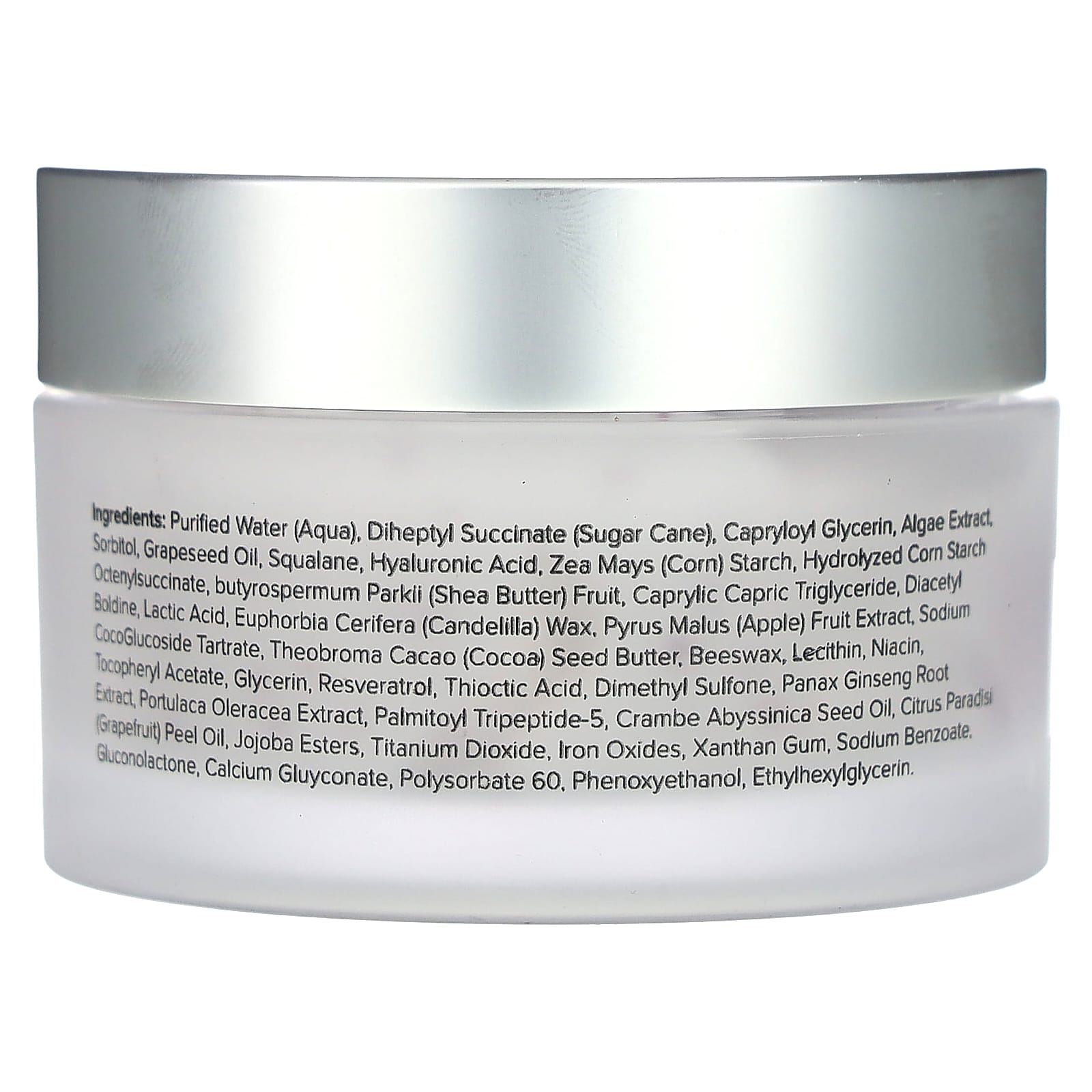 Água purificada (aqua), diheptyl succinate (cana-de-açúcar), capryloylglycerin, extrato de algas, sorbitol, óleo de semente de uva, esqualano, ácido hialurônico, amido de Zea mays (milho), octenilsuccinato de amido de milho hidrolisado, fruta Butyrospermum parkii (manteiga de karité), triglicerídeo cáprico caprílico, diacetyl boldine, ácido láctico, cera de Euphorbia cerifera (candelila). extrato da fruta de Pyrus malus (maçã), tartarato de cocoglucosídeo de sódio, manteiga da semente de Theobroma cacao (cacau), cera de abelha, lecitina, ácido nicotínico, acetato de tocoferol, glicerina, resveratrol, ácido tióctico, dimetilsulfona, extrato de raiz de Panax ginseng, extrato de Portulaca oleracea, palmitoyl tripeptide-5, óleo da semente de Crambe abyssinica, óleo da casca de Citrus paradisi (toranja rosa), jojoba esters, dióxido de titânio, óxidos de ferro, goma xantana, benzoato de sódio, gluconolactone, gliconato de cálcio, polissorbato 60, fenoxietanol, ethylhexylglycerin.