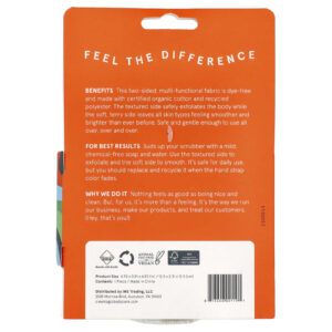 Benefícios: Este tecido multifuncional com frente e verso não contém corantes e é feito com algodão orgânico certificado e poliéster reciclado. O lado texturizado esfolia o corpo com segurança, enquanto o lado macio e terroso deixa todos os tipos de pele mais suaves e brilhantes do que nunca. Seguro e suave o suficiente para ser usado em todos os momentos.