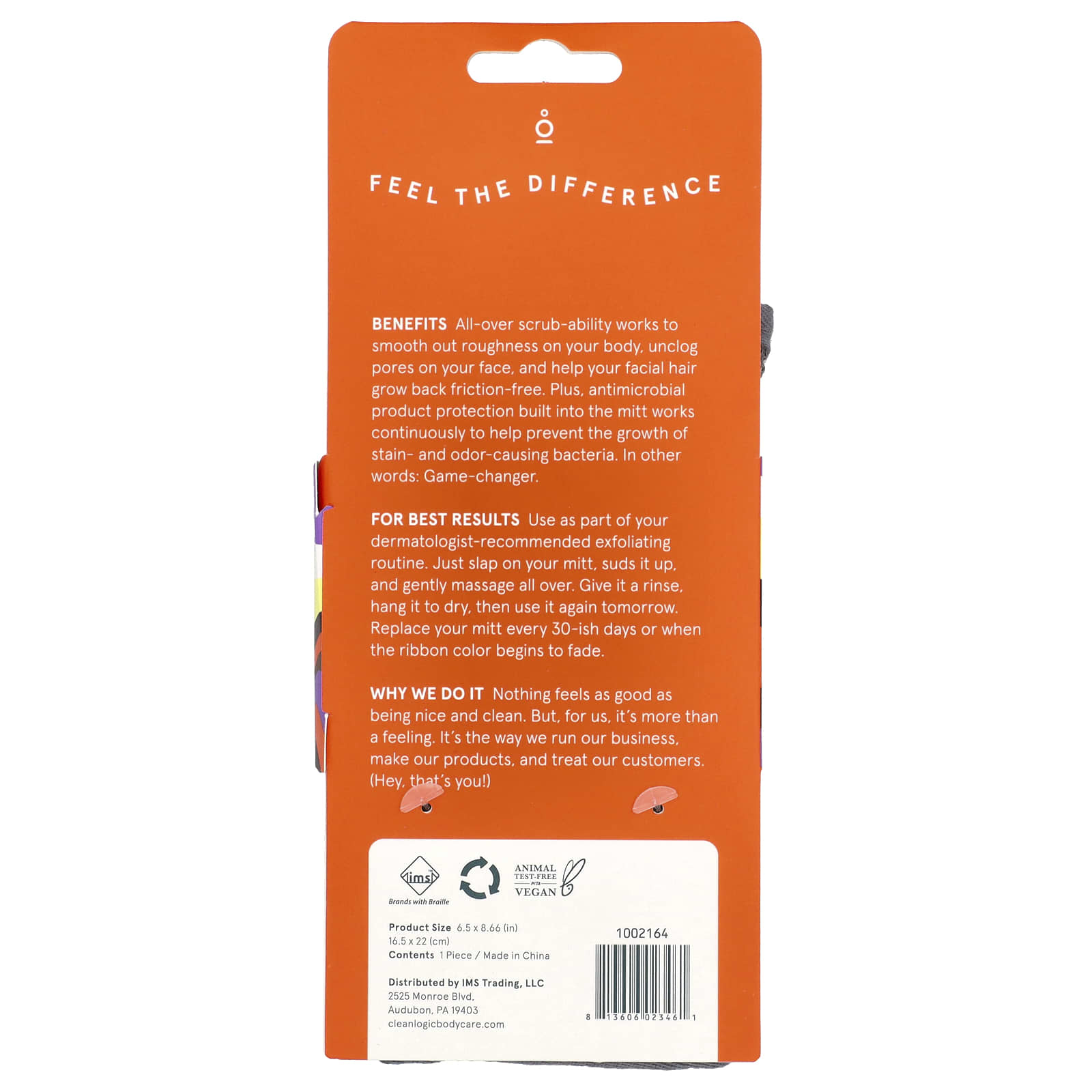 A esfoliação completa age para suavizar a aspereza do corpo, desobstruir os poros do rosto e fazer com que seus pelos faciais cresçam sem atrito. Além disso, a proteção antimicrobiana integrada na luva age continuamente para ajudar a prevenir o crescimento de bactérias que causam manchas e odores. Em outras palavras: Revolucionário.
