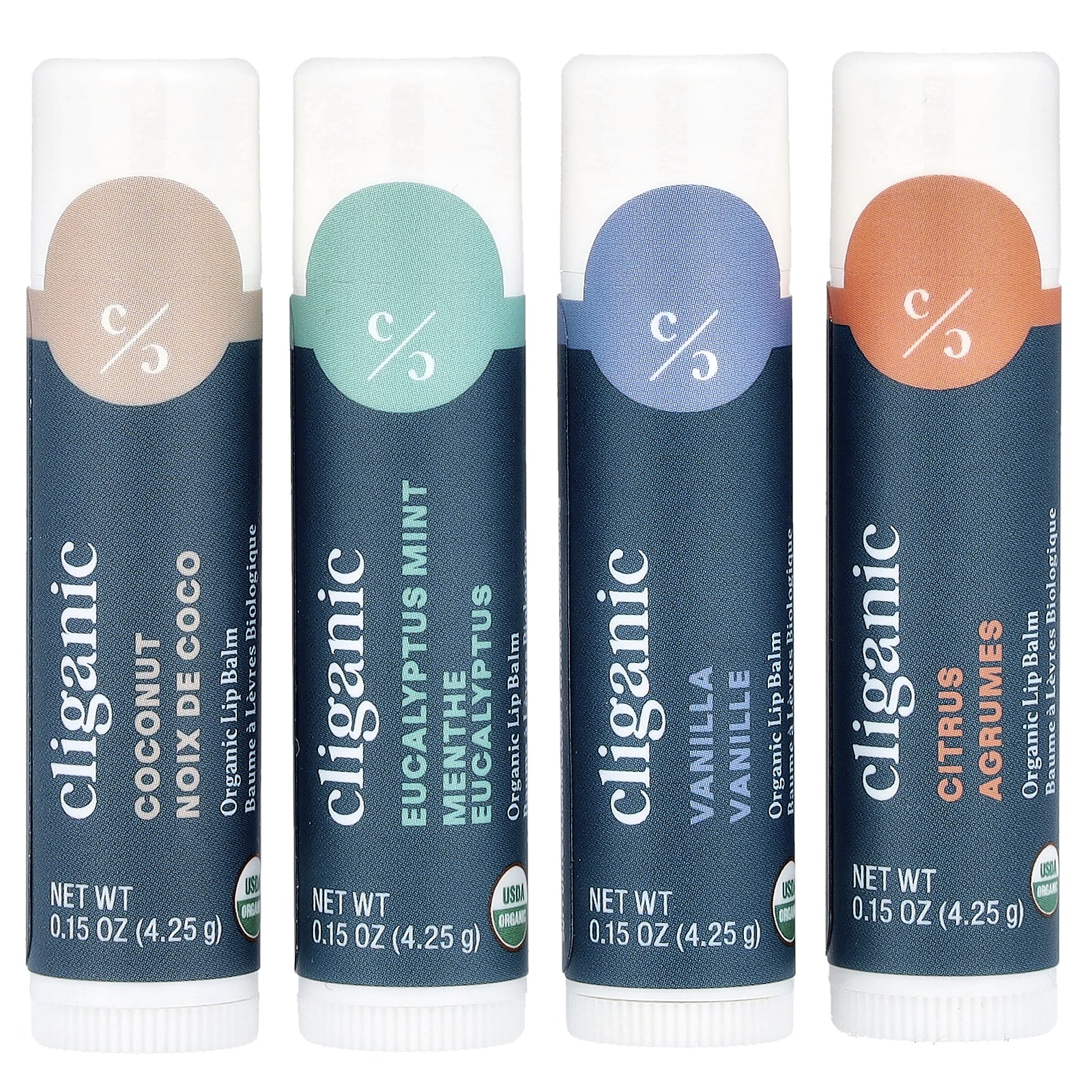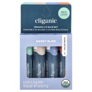 Cliganic Conjunto de Balms Labiais Orgânicos Sweet Bliss Embalagem com 4 Unidades 425 g (015 oz) Cada – Cliganic Cuidados Pessoais Lábios Bálsamo Labial Presentes relacionados a spa e banho.