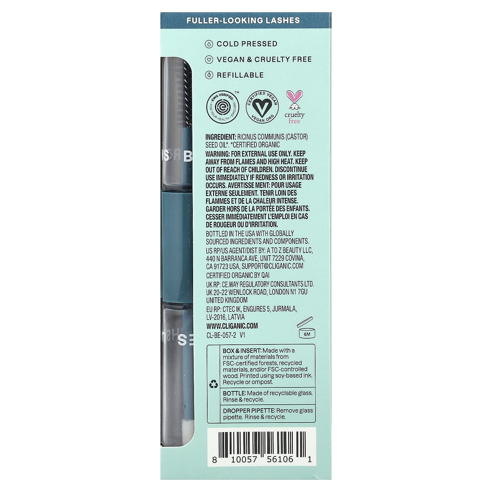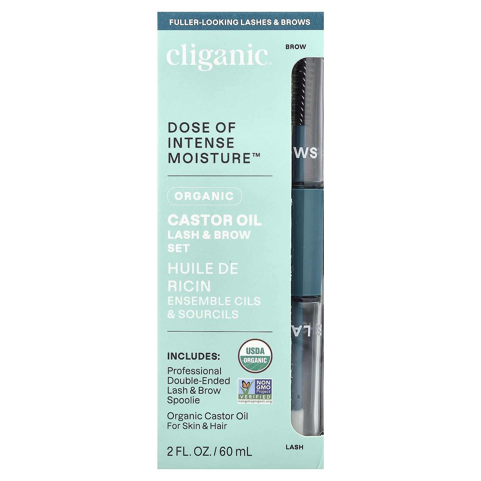 Cliganic Dose of Intense Moisture™ Óleo de Rícino Orgânico Conjunto para Cílios e Sobrancelhas 60 ml (2 fl oz) – Cliganic Beleza Maquiagem Olhos Primers e séruns para cílios Sobrancelhas.