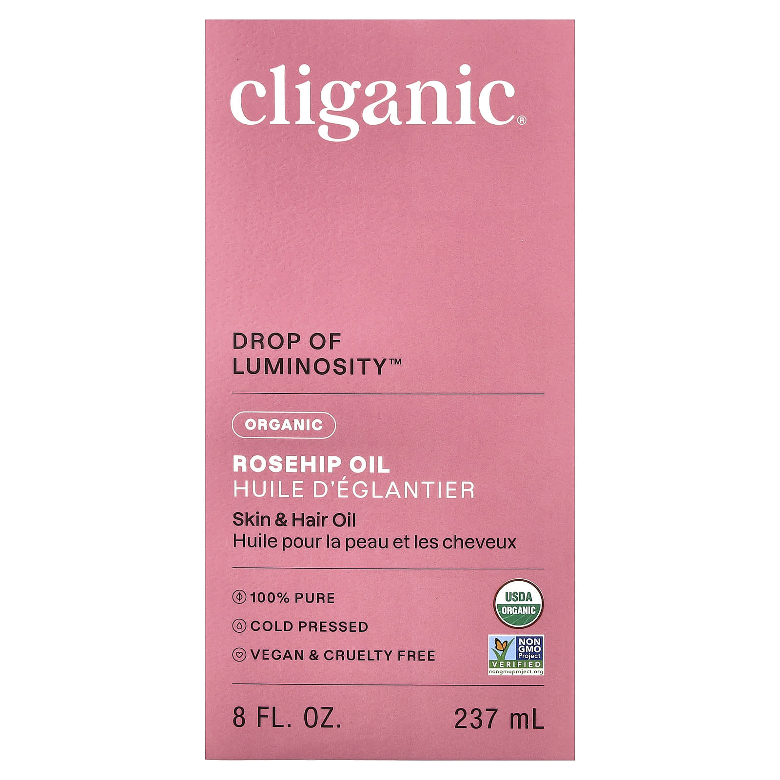 Cliganic Drop of Luminosity™ Óleo de Rosa-Mosqueta Orgânico 237 ml (8 fl oz) – Cliganic Beleza Hidratantes Faciais e Cremes Óleos faciais Cuidados Pessoais Cuidados com o Corpo Óleos corporais e de massagem Óleo de Rosa-Mosqueta.
