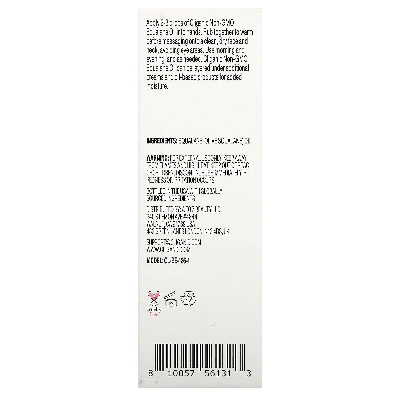 Cliganic Óleo de Esqualano 100% Puro e Natural 30 ml (1 fl oz) – Cliganic Cuidados Pessoais Cuidados com o Corpo Óleos corporais e de massagem.