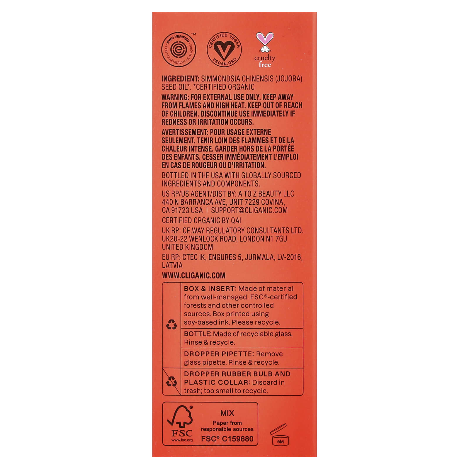 • Certified Vegan e Cruelty Free