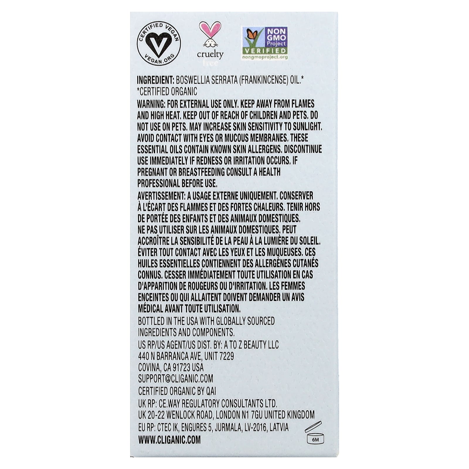 Cliganic Óleo Essencial de Olíbano Orgânico 30 ml (1 fl oz) – Cliganic Cuidados Pessoais Óleos Essenciais e Aromaterapia Óleos Essenciais Individuais Óleo Essencial de Olíbano.