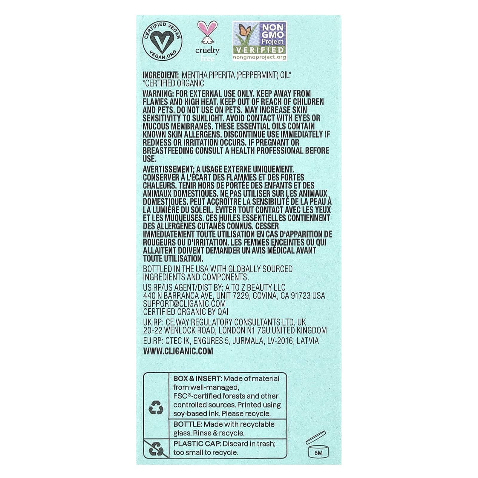 Cliganic Óleo Essencial Orgânico Hortelã-Pimenta 10 ml (034 fl oz) – Cliganic Banho e Cuidados Pessoais Óleos Essenciais e Aromaterapia Óleos Essenciais Individuais Óleo Essencial de Hortelã-Pimenta.
