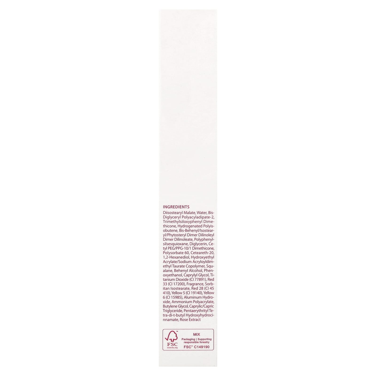 diisostearyl malate, água, bis-diglyceryl polyacyladipate-2, trimetilsiloxifenil dimeticona, poliisobuteno hidrogenado, bis-behenyl/isostearyl/phytosteryl dimer dilinoleyl dimer dilinoleate, polifenilsilsesquioxano, diacilglicerol, cetyl peg/ppg-10/1 dimethicone, polissorbato 60, ceteareth-20,1,2-hexanediol, copolímero de acriloildimetiltaurato de sódio e acrilato de hidroxietila, esqualano, behenyl alcohol, fenoxietanol, caprylyl glycol, dióxido de titânio (CI 77891), vermelho 33 (CI 17200), fragrância, isoestearato de sorbitana, vermelho 28 (CI 45 410), amarelo 5 (CI 19140), amarelo crepúsculo (CI 15985), hidróxido de alumínio, poliacrilato de amônio, butilenoglicol, caprylic/capric triglyceride, pentaerythrityl tetra-di-t-butyl hydroxyhydrocinnamate, extrato de rosa.