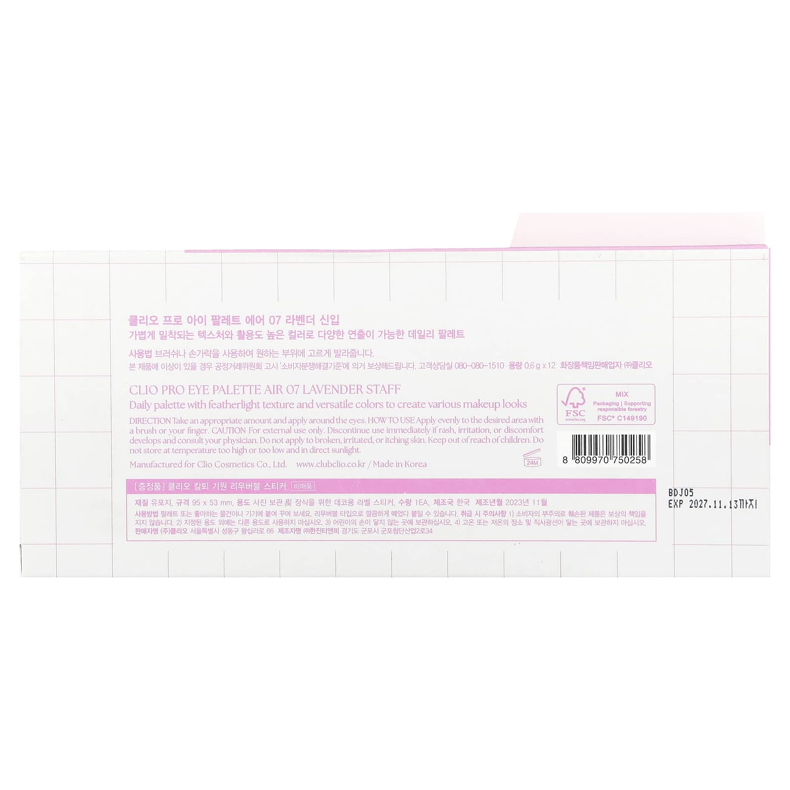 Clio Paleta de Sombras Pro Eye 07 Bastão de Lavanda 1 Unidade – Clio Beleza Maquiagem Olhos Sombra Sombras K-Beauty.